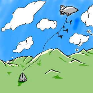 Perhaps the most economical method for harvesting wind energy is the sky turbine, a turbine held up in the sky by an aerostatic device connected to the ground to a much smaller anchoring tower.